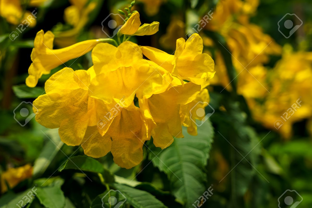 Bright Yellow Bells Flower Or Tecoma Stans Blooming Under Sunlight With Blur Background Stock Photo Picture And Royalty Free Image Image 77713158